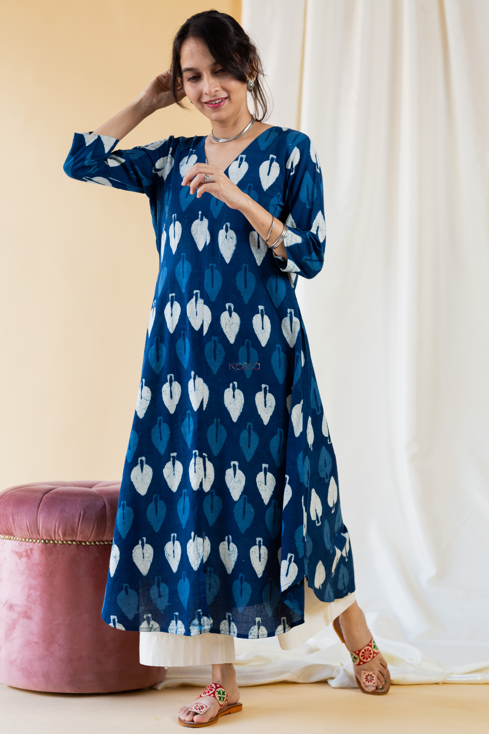 SKU: AEP07 This midnight blue kurta is part of regular range can be easily hand washed. It is a good match with our white palazzo.