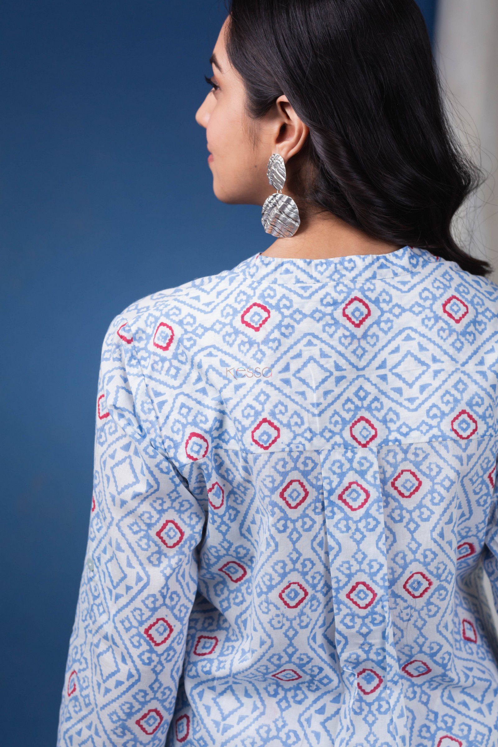 SKU: AVDAF211 The Cotton Co-ords Set is a comfortable and stylish ensemble, featuring a white and blue color scheme that’s perfect for any occasion. The kurta is highlighted with a shell button in front and features a handblock print, collar neck, and full sleeves. It also has a convenient one side pocket for storing essentials. The salwar also has a one side pocket and complements the kurta beautifully with its white and blue color scheme. Overall, this co-ords set is a great choice for anyone who wants to look fashionable while staying comfortable, making it perfect for casual outings or semi-formal events.