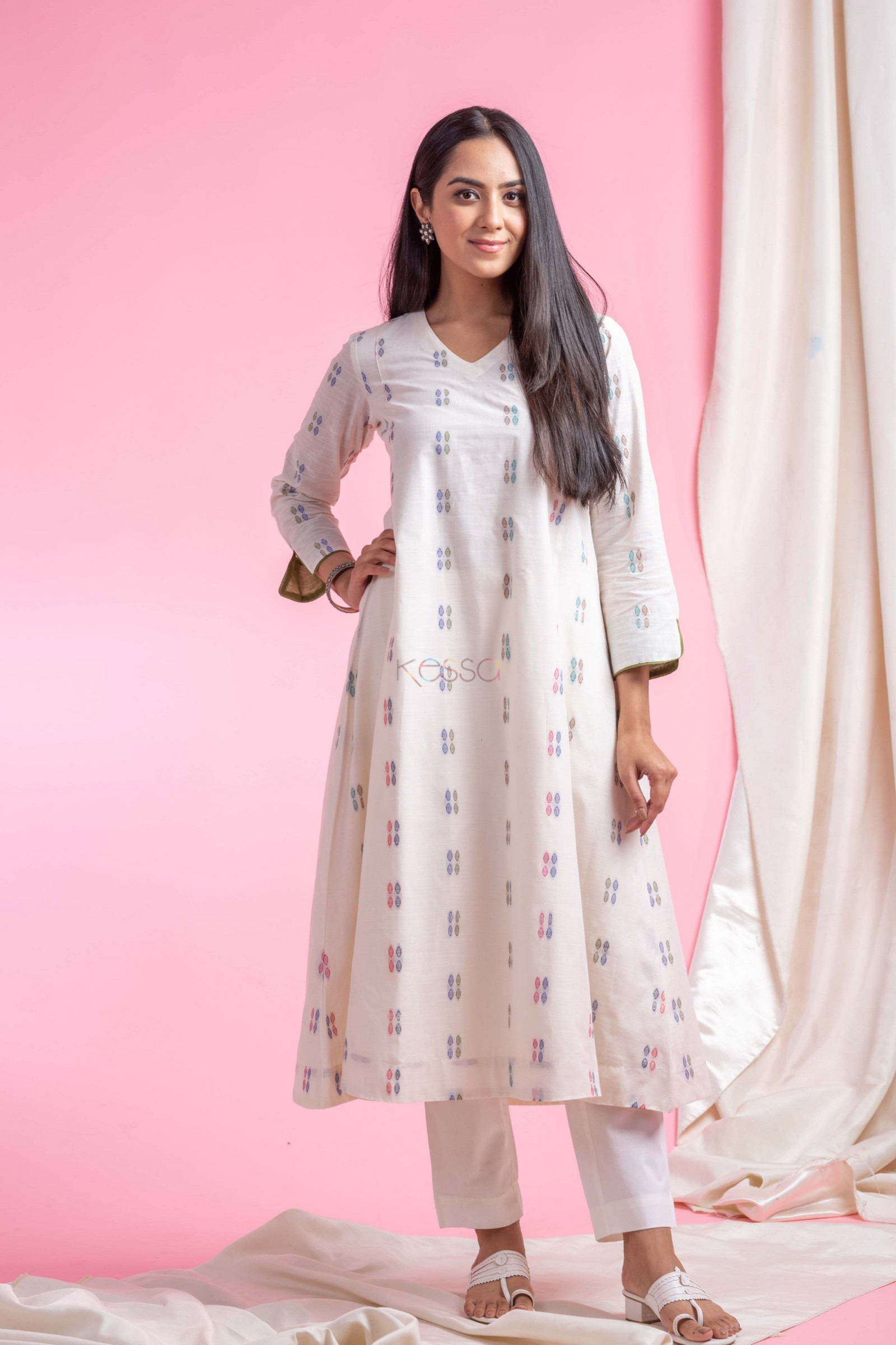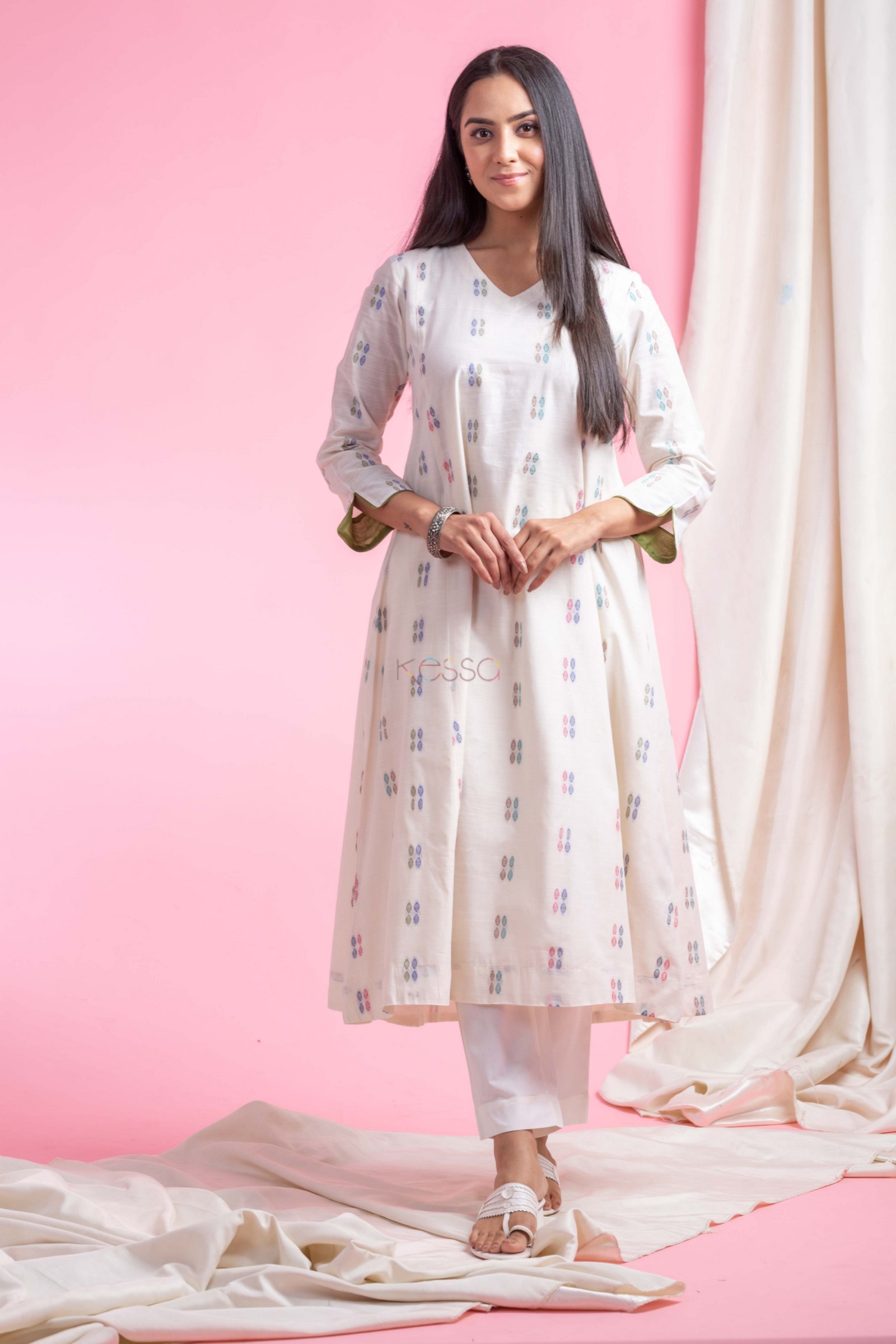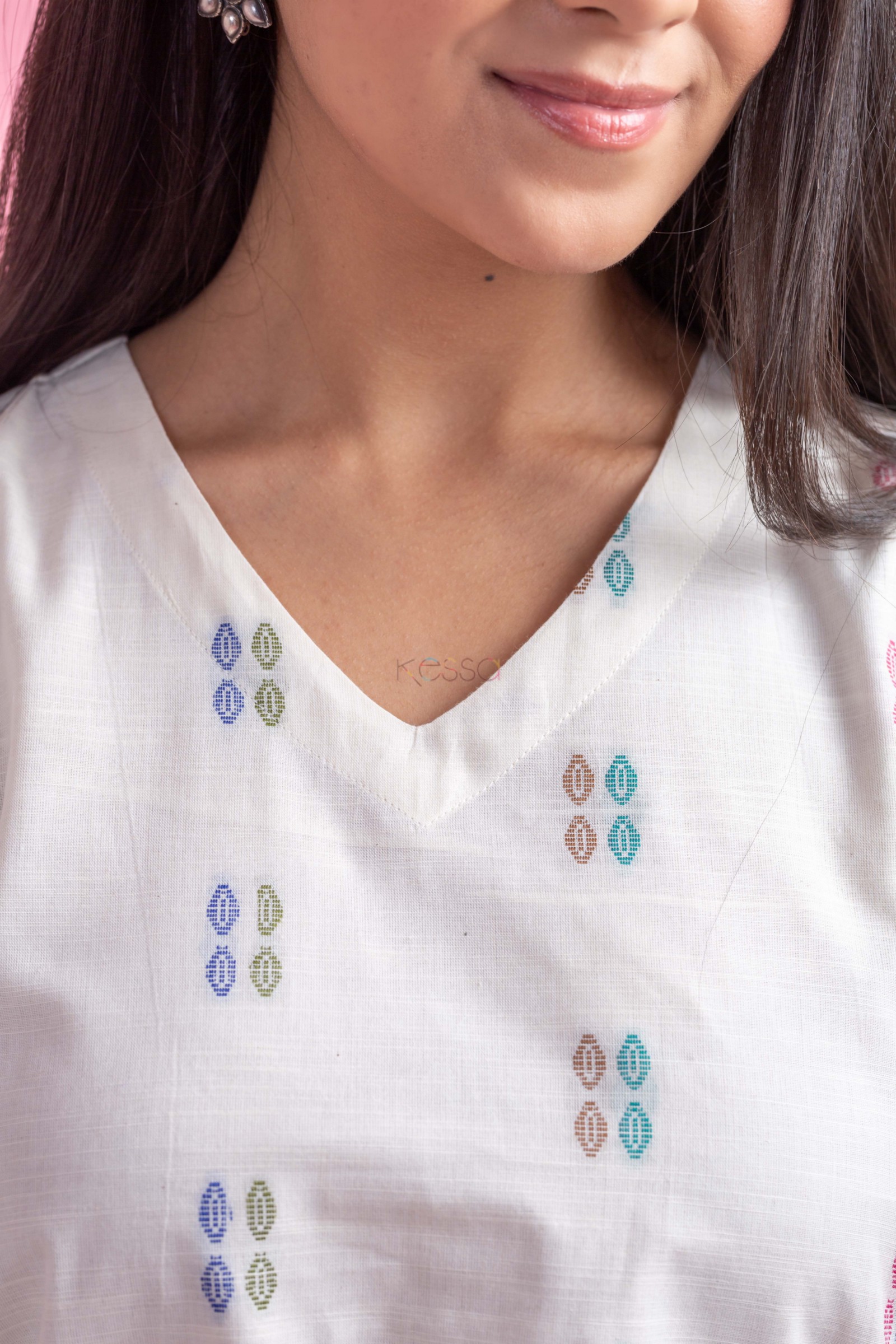 SKU: AVDAF285 Indulge in the understated charm of our handloom cotton A-line kurta in a serene off-white hue. The classic A-line silhouette flatters every figure, while the sleeves are accentuated with elegant piping for a touch of sophistication. Featuring a graceful V-neck and convenient one-side pocket, this kurta exudes effortless style and versatility, perfect for any casual or semi-formal occasion, this kurta comes with a soft cotton lining, ensuring a comfortable and breathable wear all day long. Pair it with our cotton pant for a cohesive look that exudes confidence.