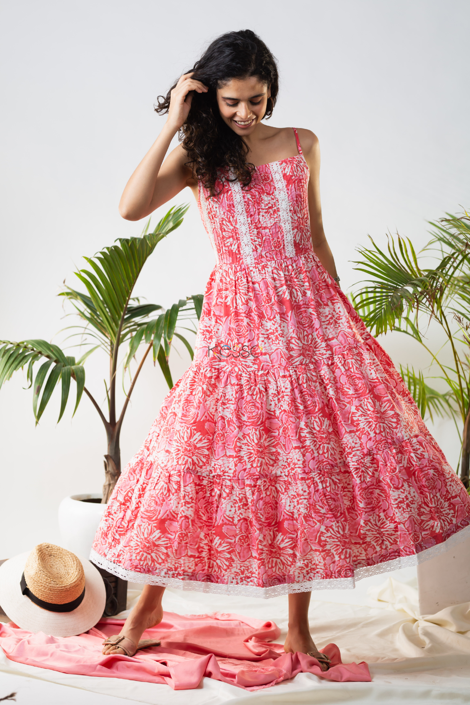 Enaya Strappy Floral Pink Dress