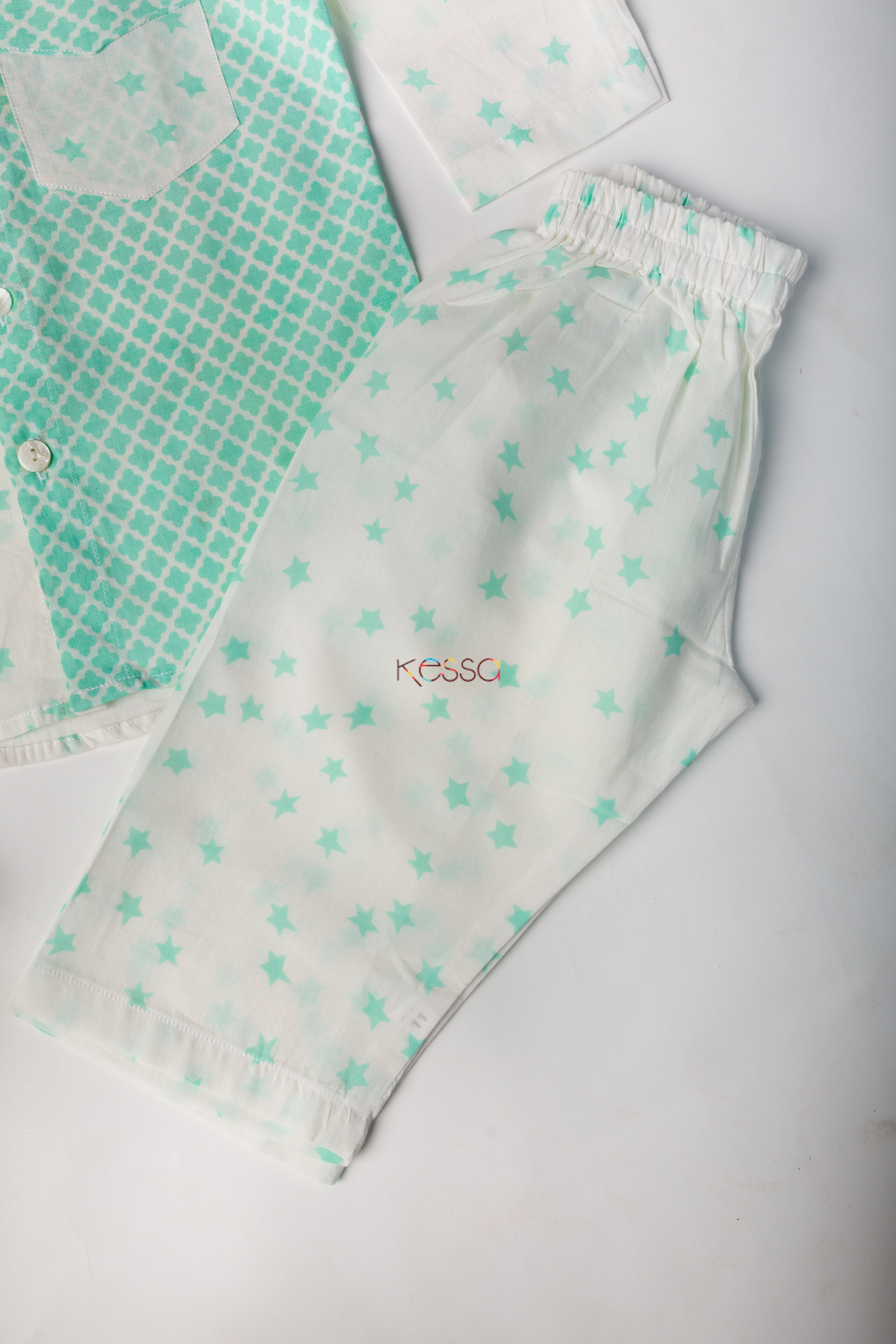 | Tags | Aqua Haze White, Bottom, Cotton, Kids, Pant, Top, Turquoise Blue |