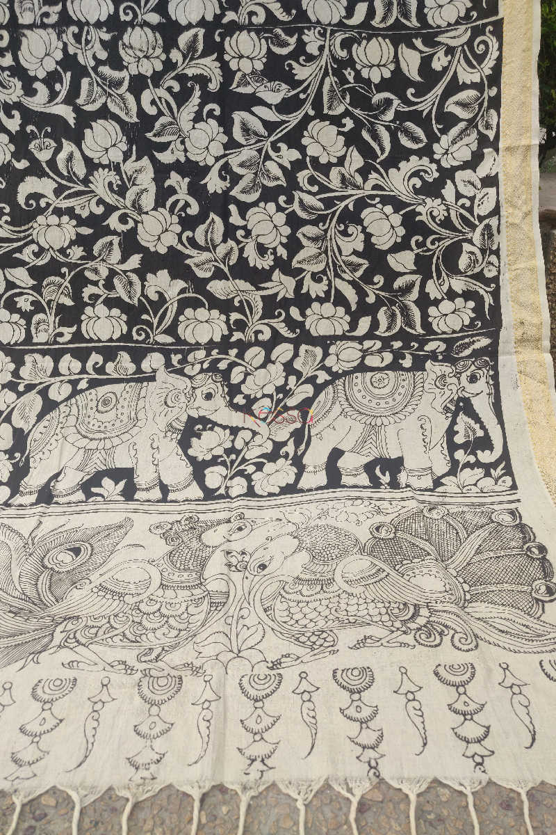 Be the first to review “Kalamkari Elephant Motive Cotton Zari Dupatta” Cancel reply