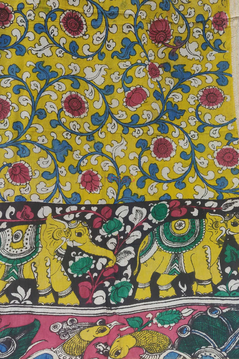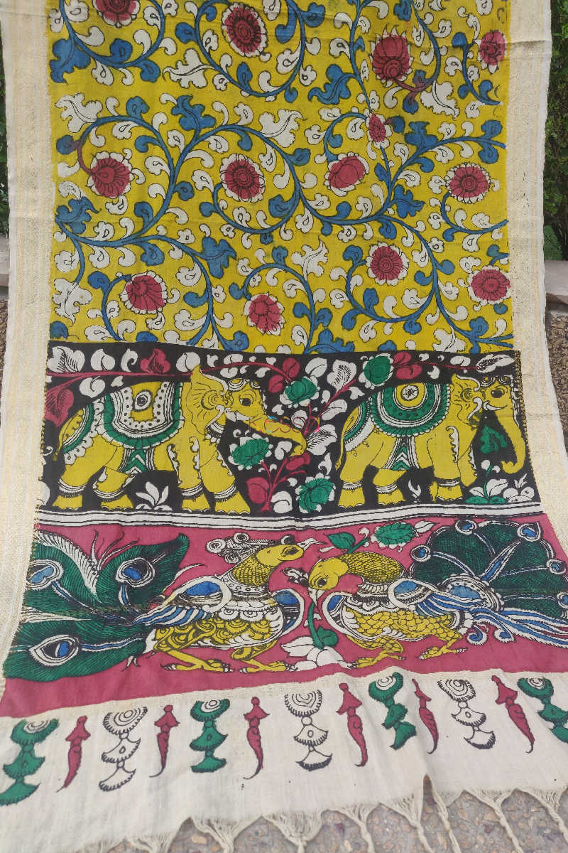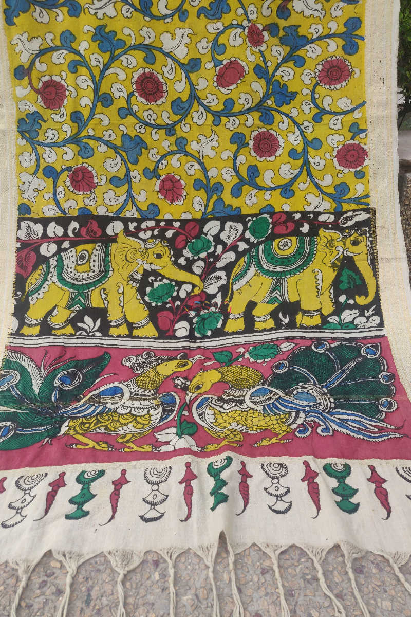 Yellow Kalamkari Cotton Zari Dupatta KKD02ZARI1