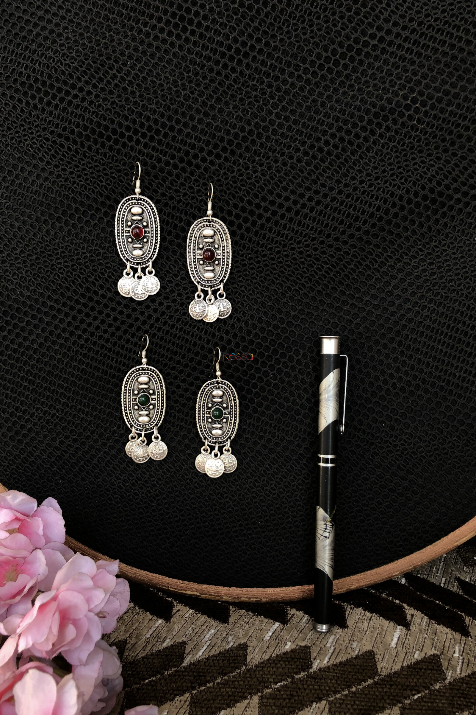 SKU: KPE25 Gorgeous Turkoman Jewellery Style earrings with beautiful colors. The jewellery is light in weight and made of German silver with gilit.
