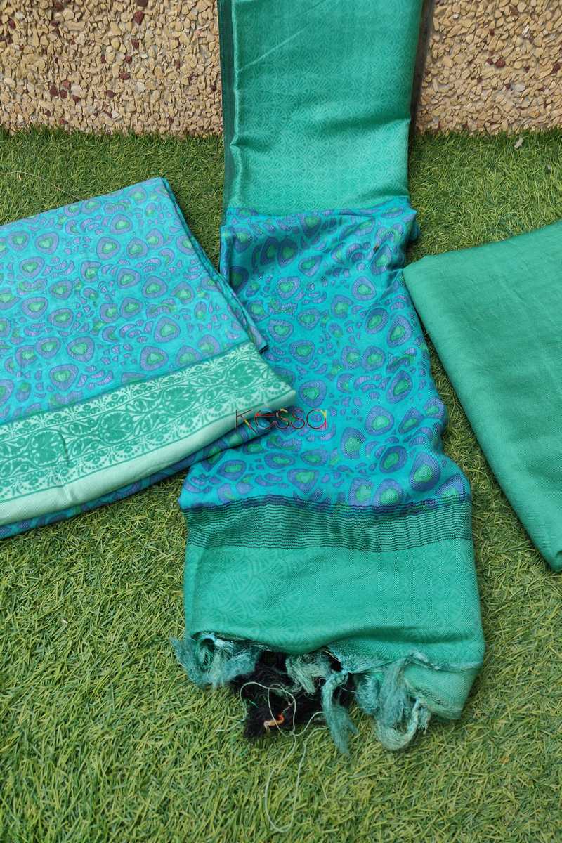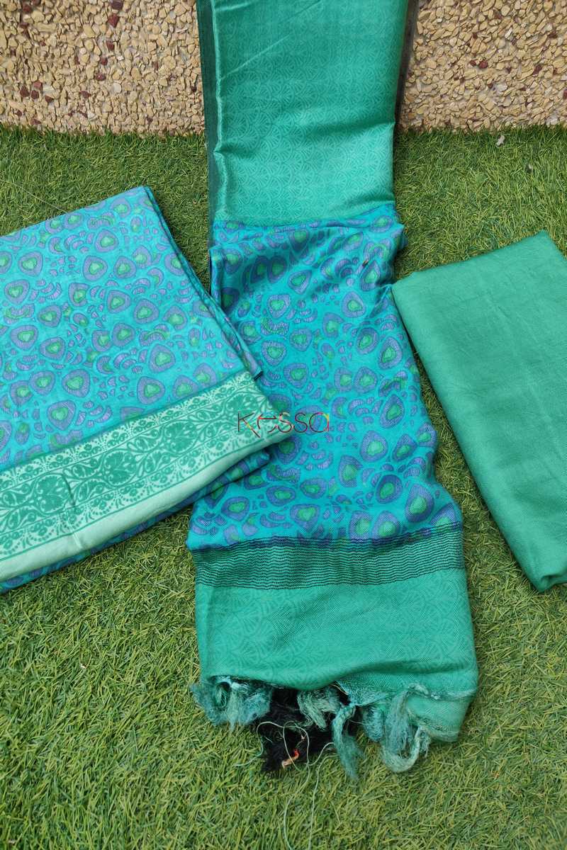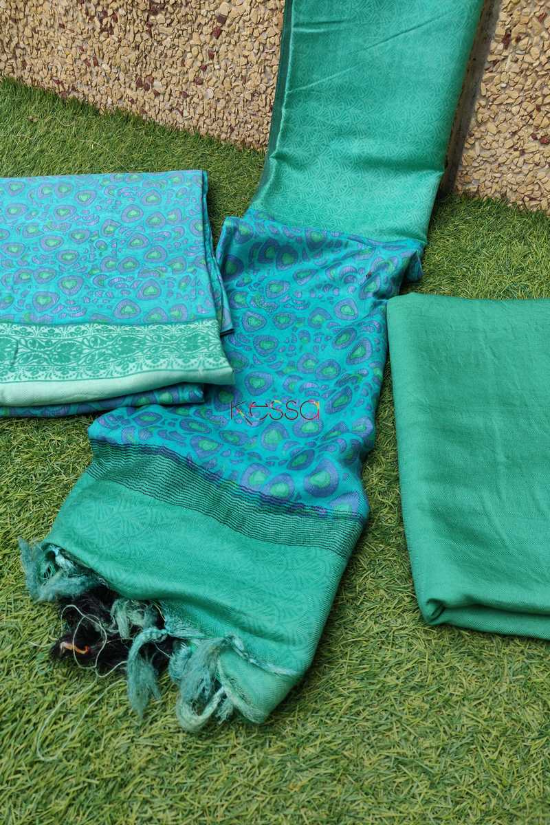 Turquoise Semi-Pashmina Complete Suit Set
