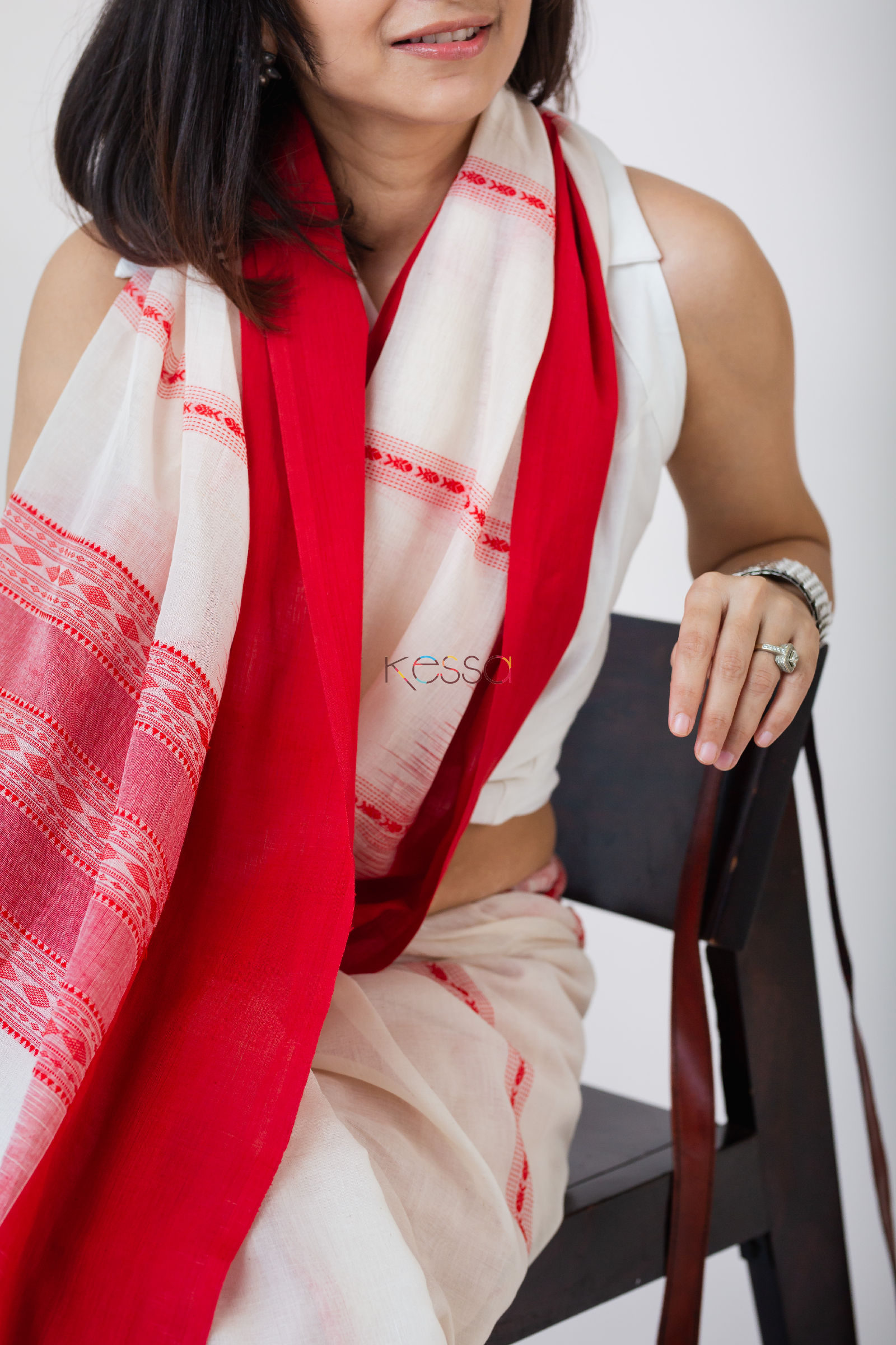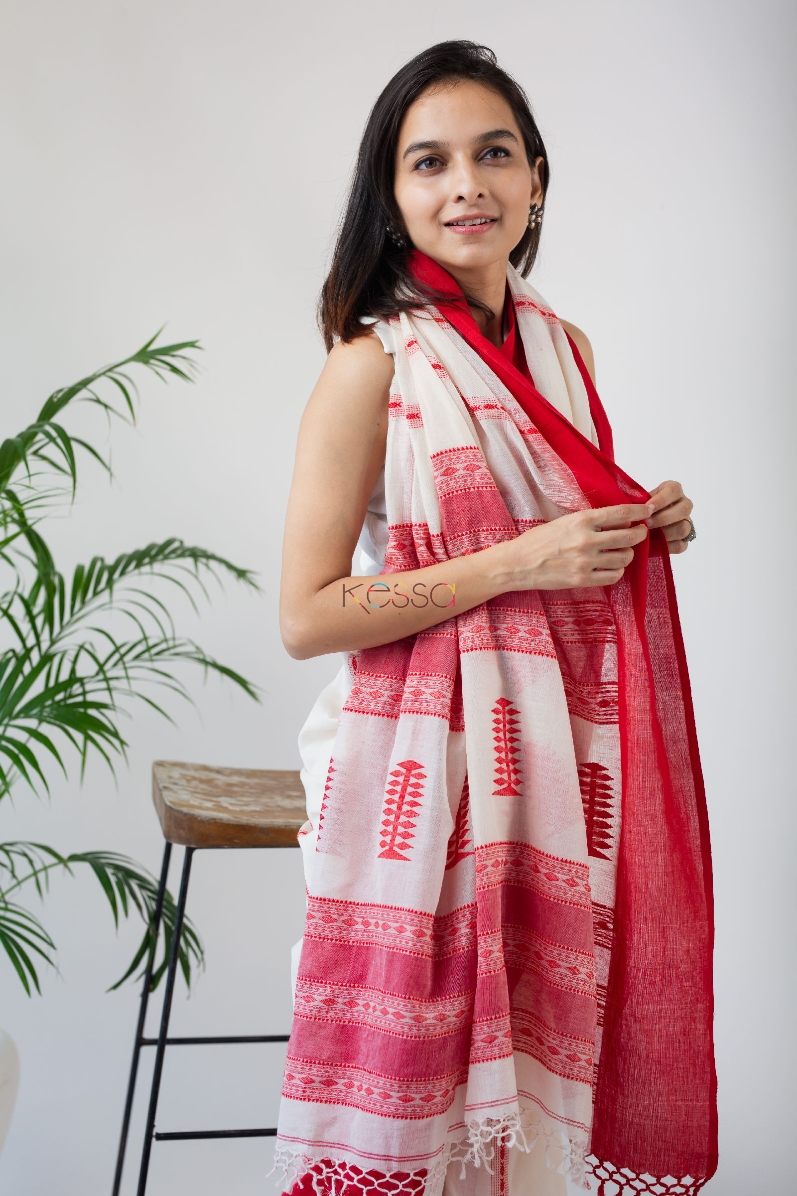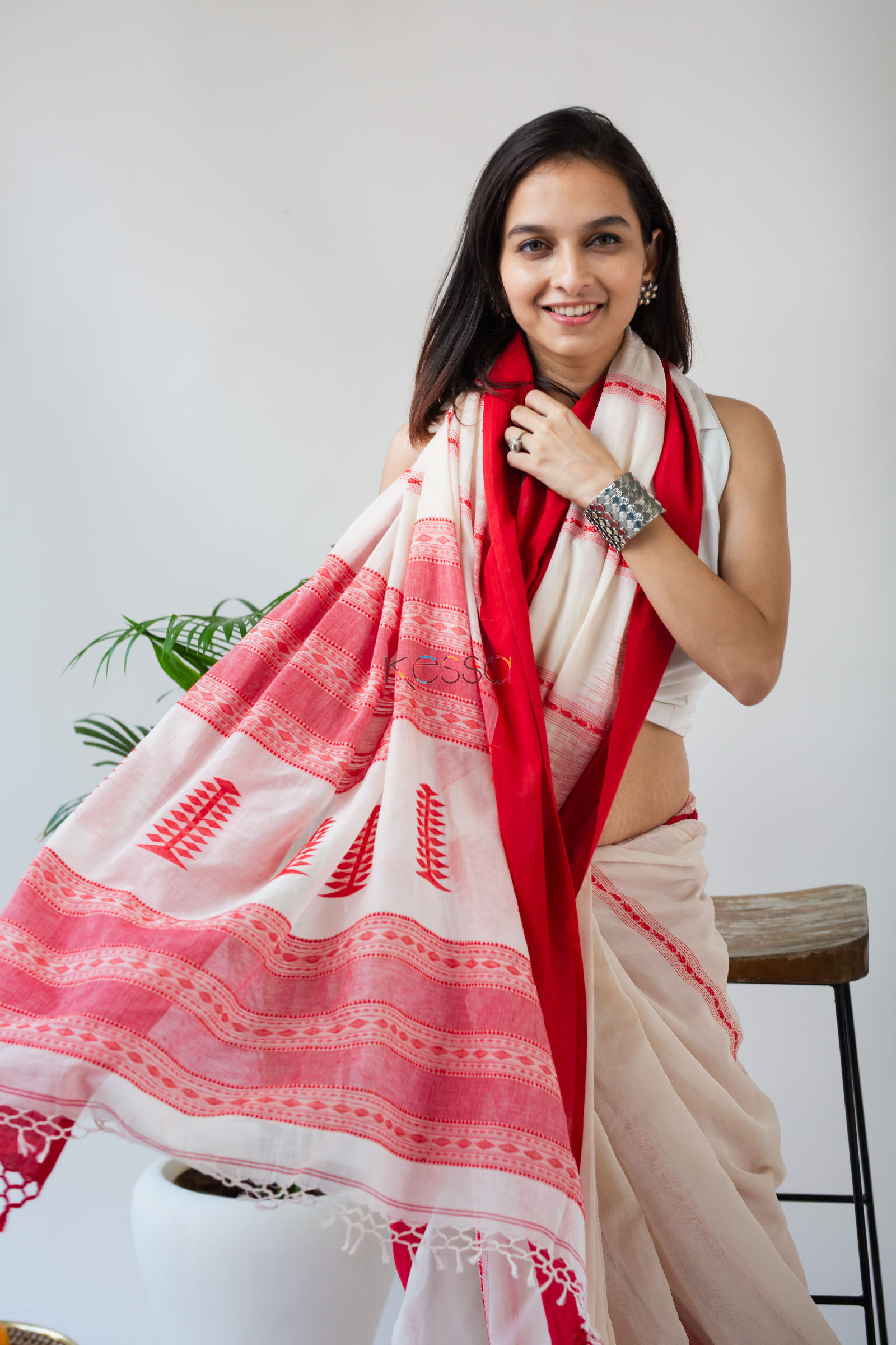 SKU: KUSS01 A handwoven cotton saree is a must purchase for your ethnic collection as office wear and festive wear. We have kept the saree fabric very soft and easy to wear. The saree comes with red handloom blouse fabric.