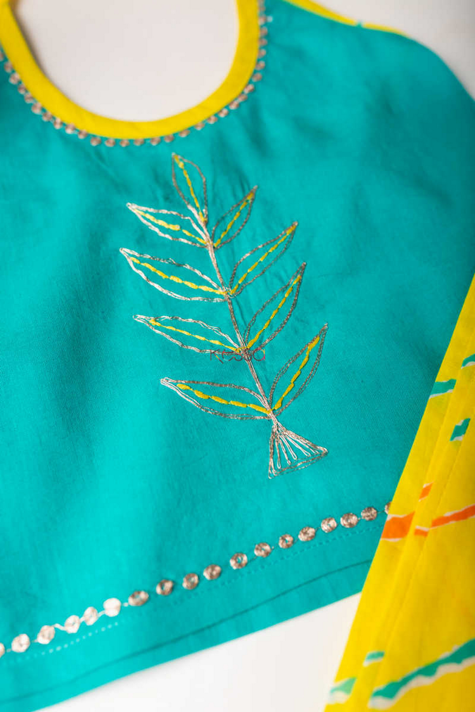 | Tags | Bottom, Bright Sun Yellow, Bright Turquoise, complete-set, Cotton, dupatta, festival, Girls, Kids, Top |