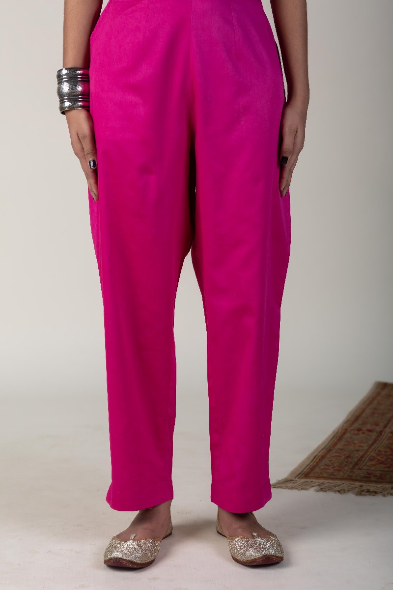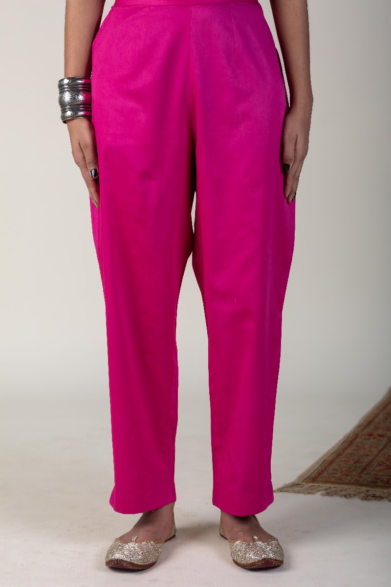 SKU: PNT004-magenta-pink These pure cotton satin based pants are perfect to slip into with your various kurta collection. All-time classic straight style gives comfortable fit.