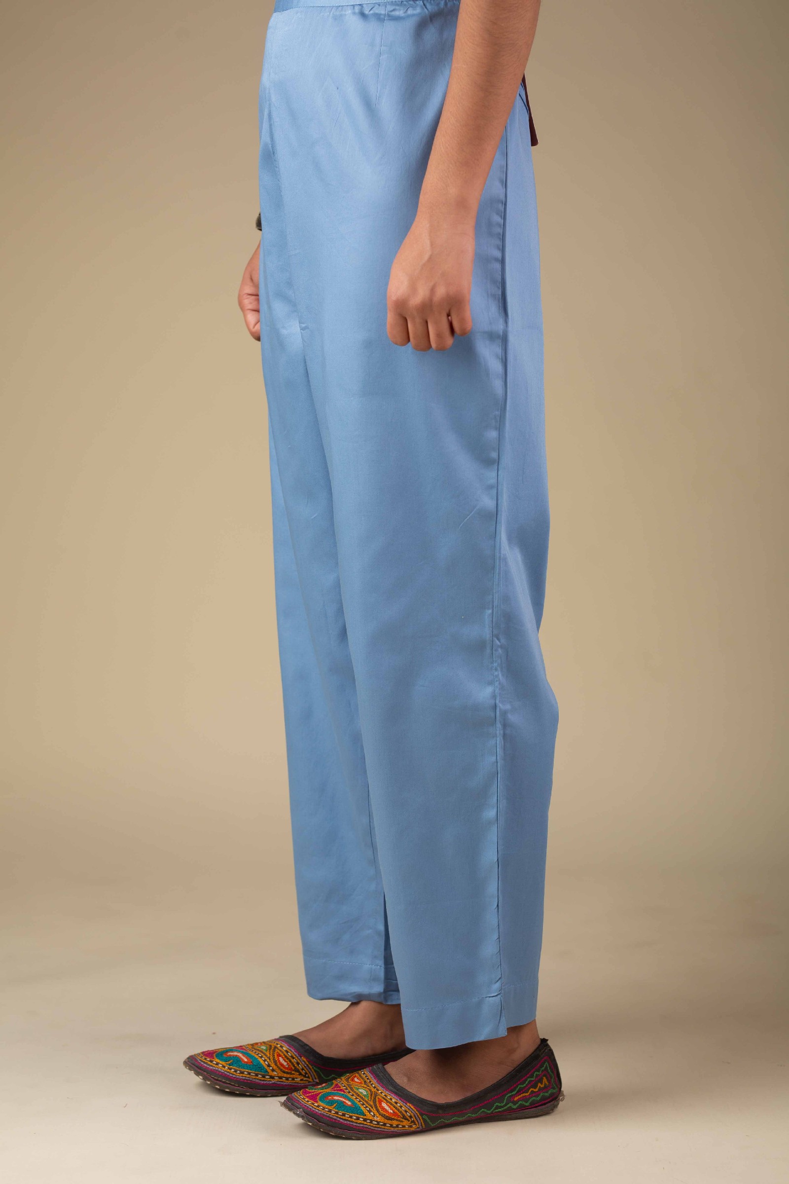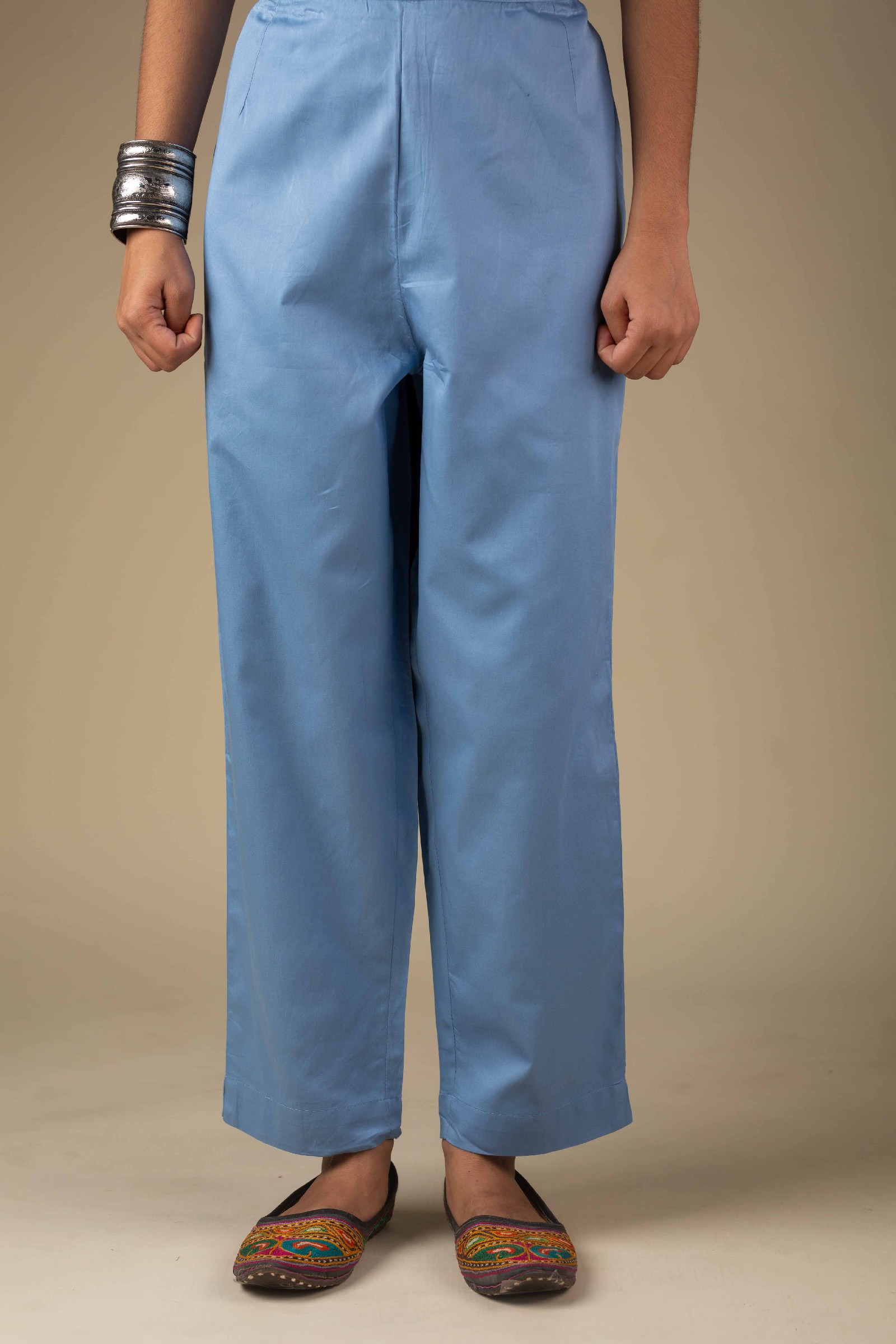 SKU: PNT004-sky-blue These pure cotton satin based pants are perfect to slip into with your various kurta collection. All-time classic straight style gives comfortable fit.