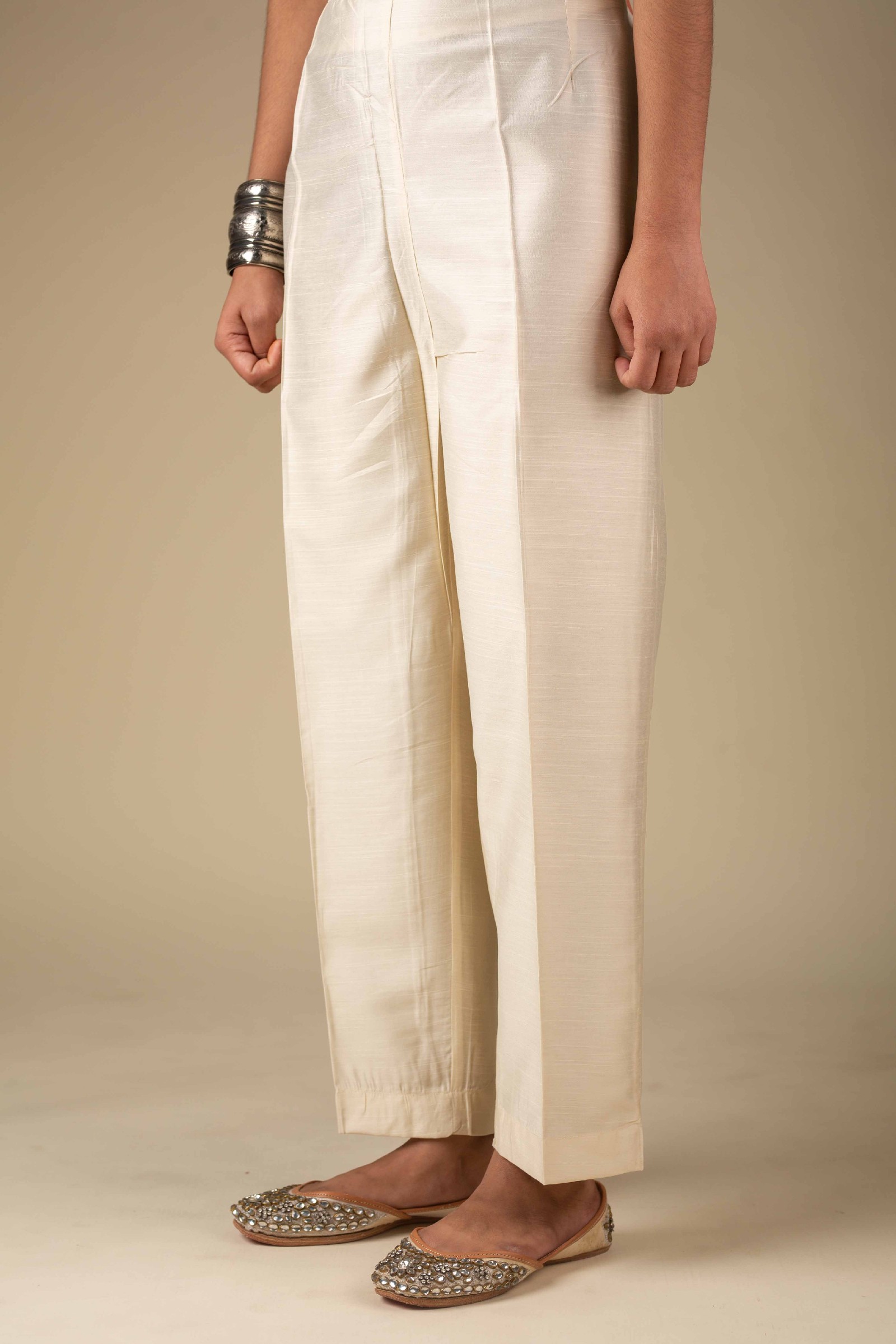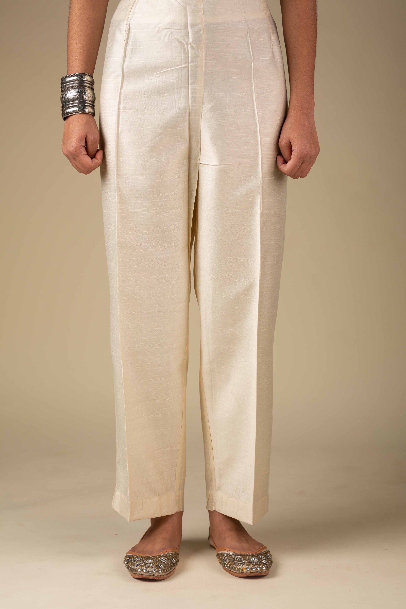 SKU: PNT005-cream These pure viscose silk based pants are perfect to slip into with your various kurta collection. All-time classic straight style gives comfortable fit.