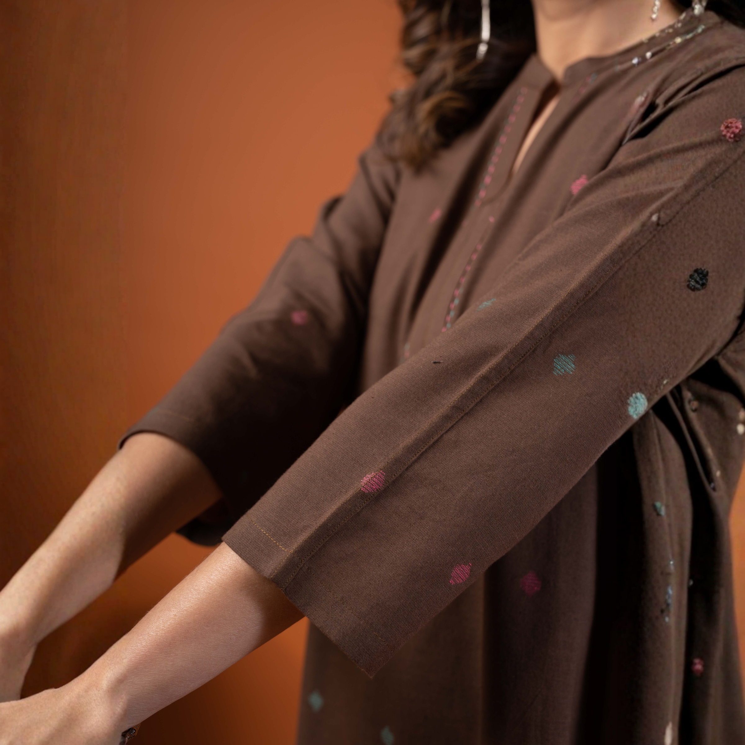 SKU: PNT007-brown These pure cotton slub based pants are perfect to slip into with your various kurta collection. All-time classic straight style gives comfortable fit.