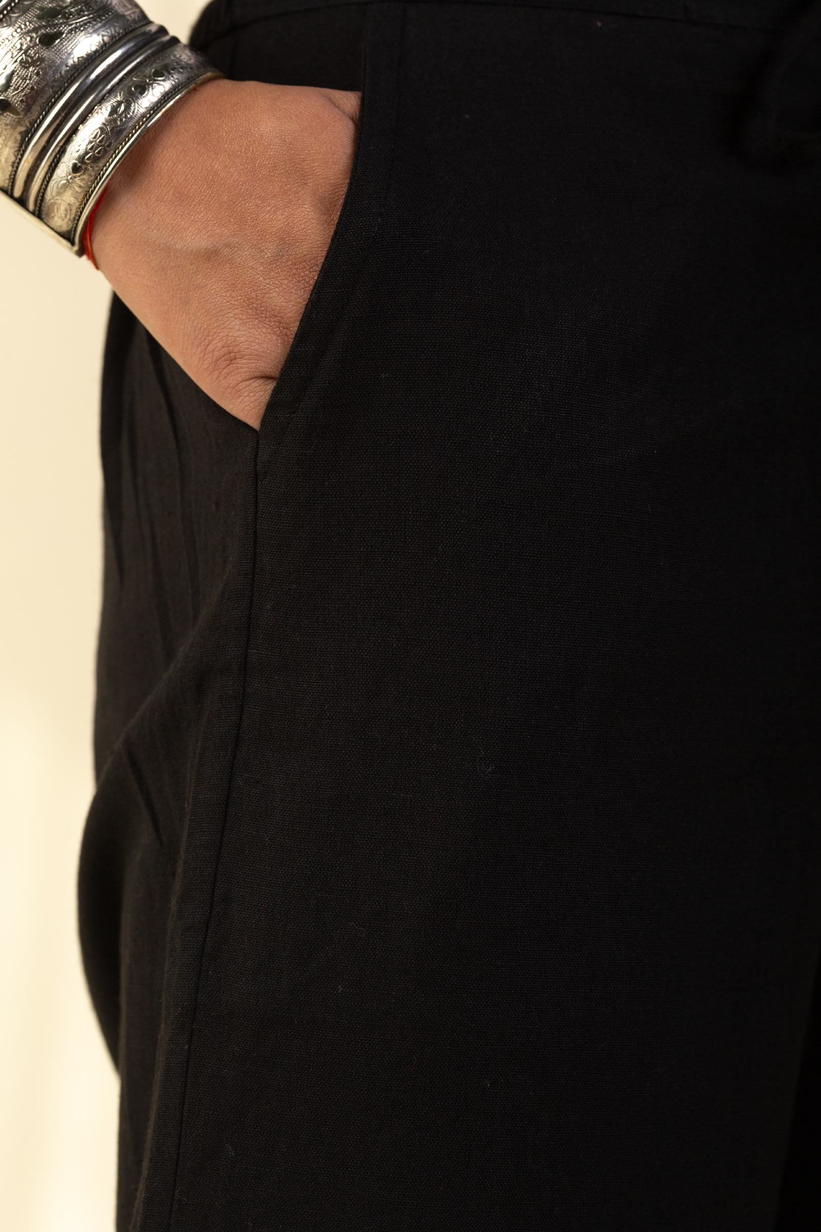 SKU: PNT008-black A cotton based salwar is comfortable wear with one side pocket. Adjustment in waist fitting is not a problem with this salwar as waist is half elastic and front tie thread.