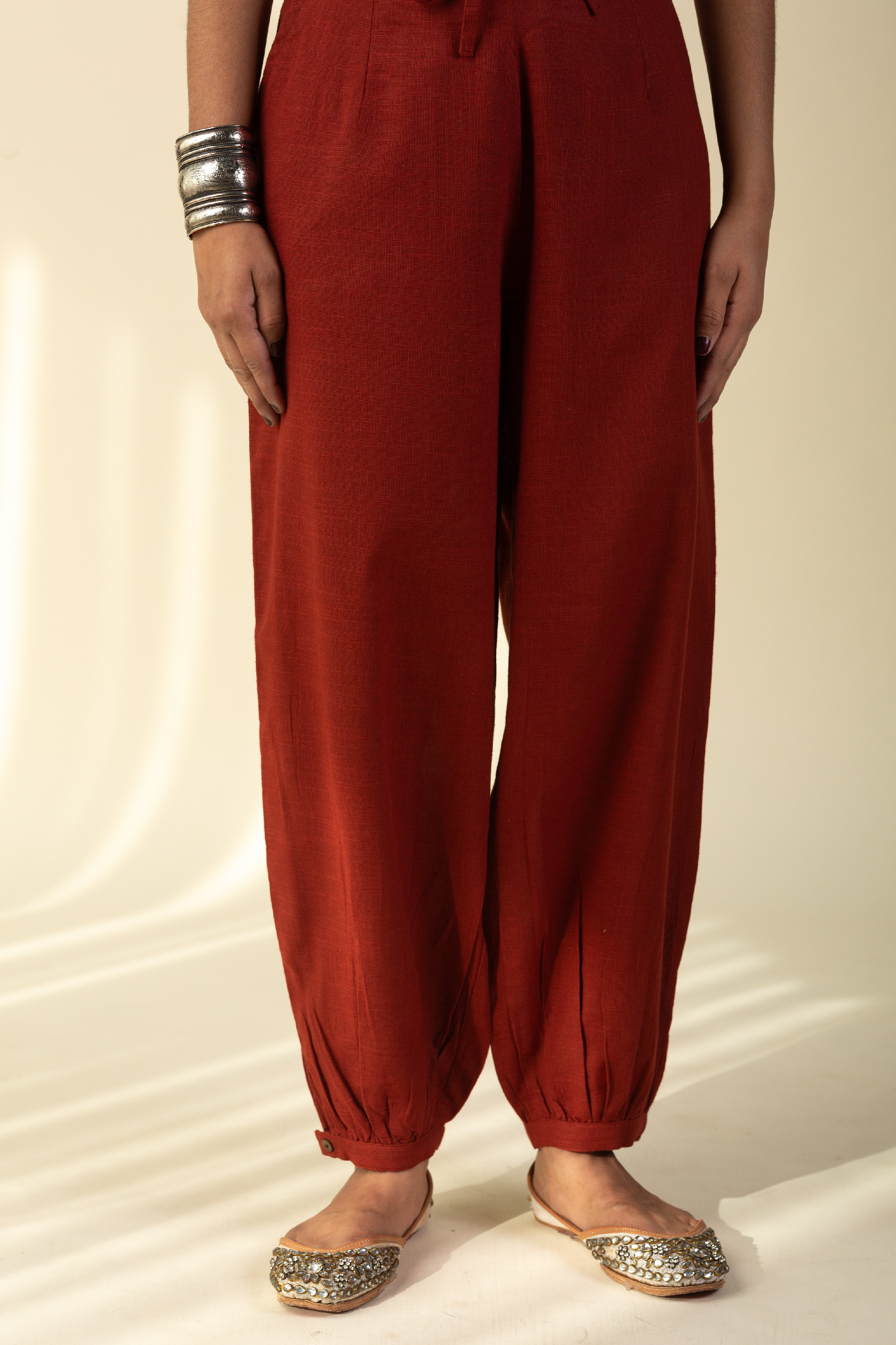 SKU: PNT008-rust A cotton based salwar is comfortable wear with one side pocket. Adjustment in waist fitting is not a problem with this salwar as waist is half elastic and front tie thread.