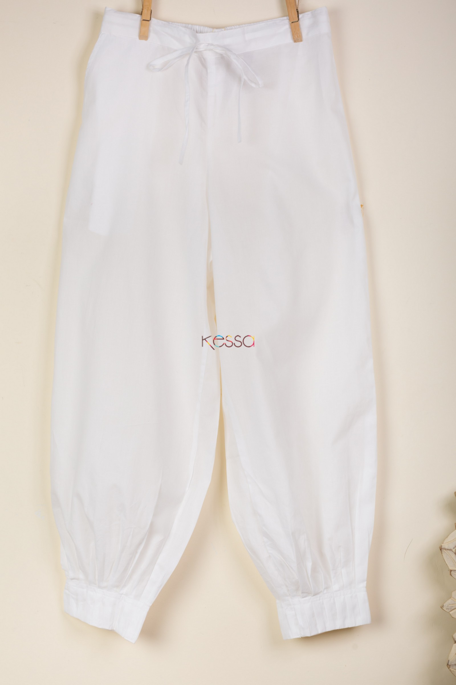 SKU: SAP14-white The mulmul based soft cotton salwar comes with front drawstrings, and pleated bottom, with one side pocket the salwar comes in many colors.