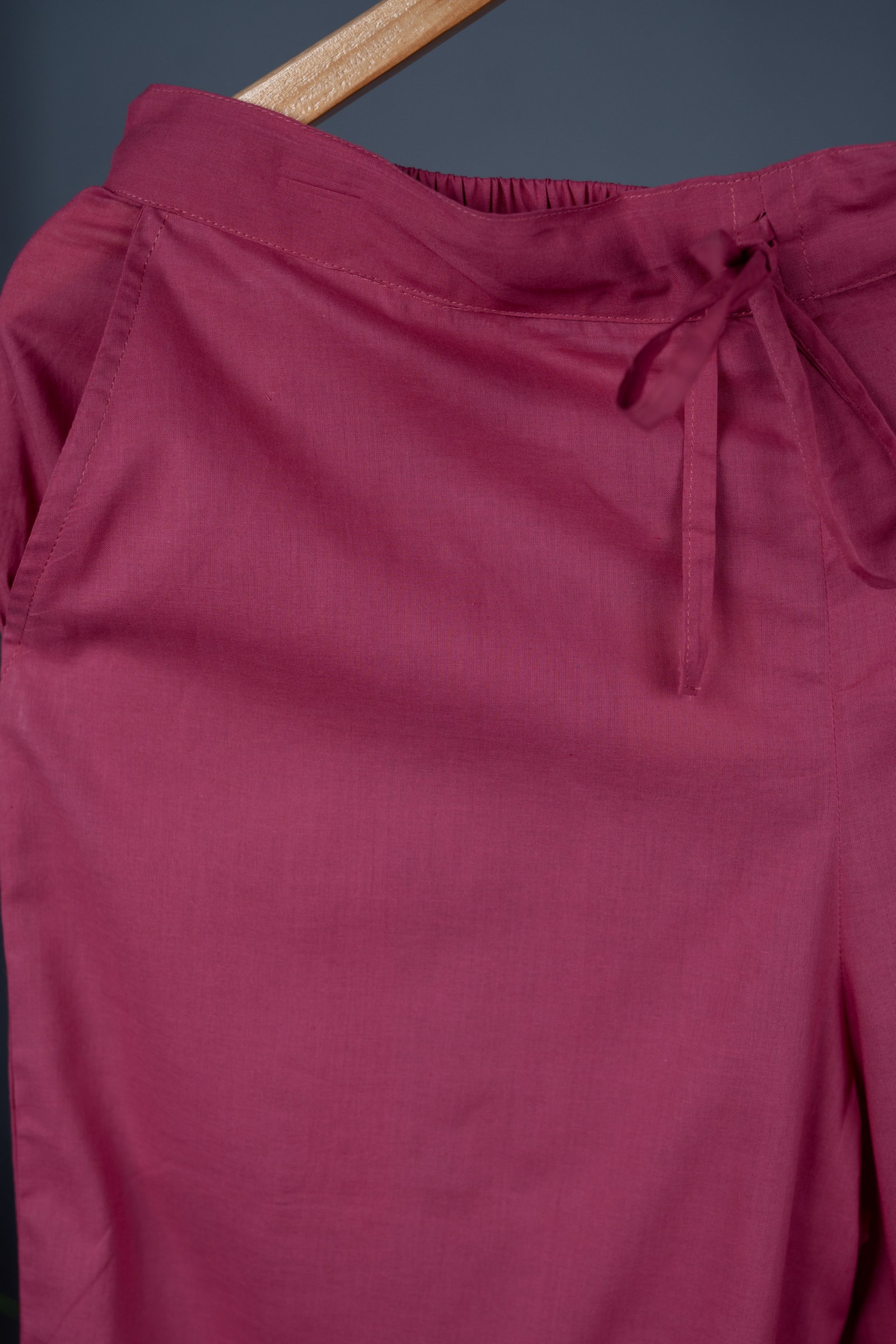 SKU: SAP14-rose-pink The mulmul based soft cotton salwar comes with front drawstrings, and pleated bottom, with one side pocket the salwar comes in many colors.