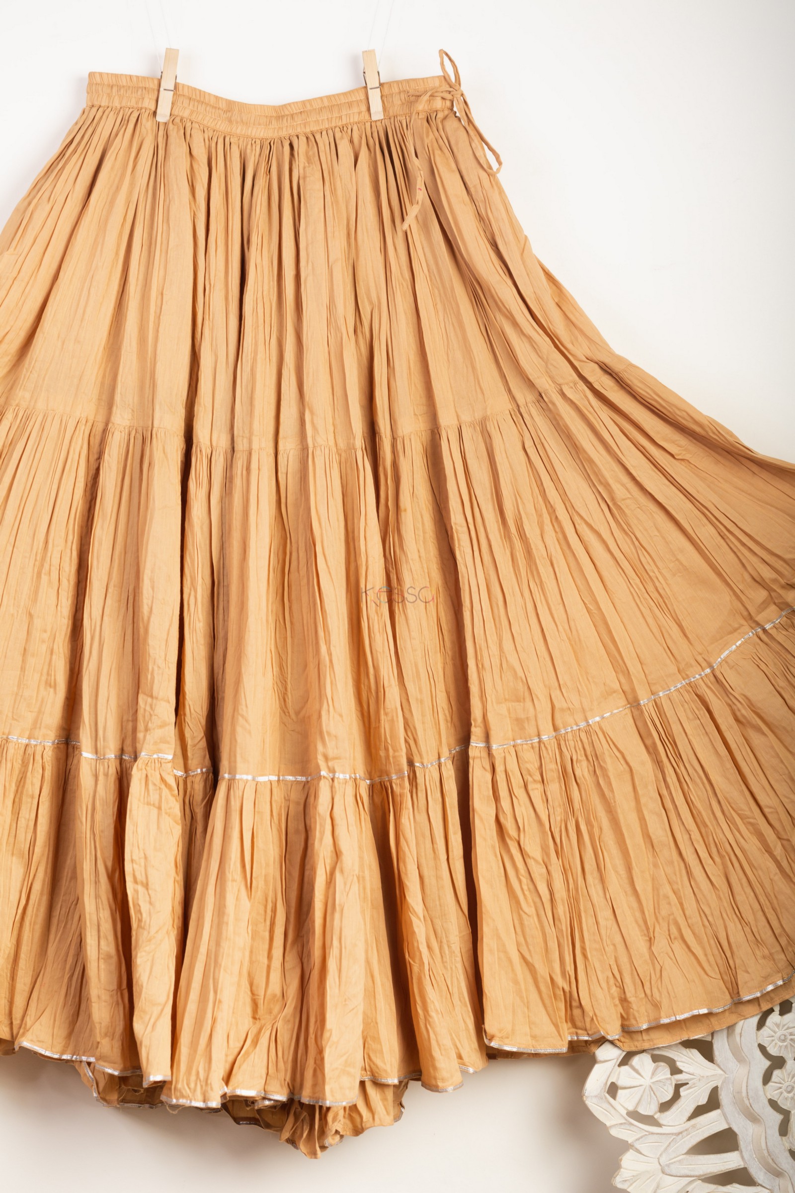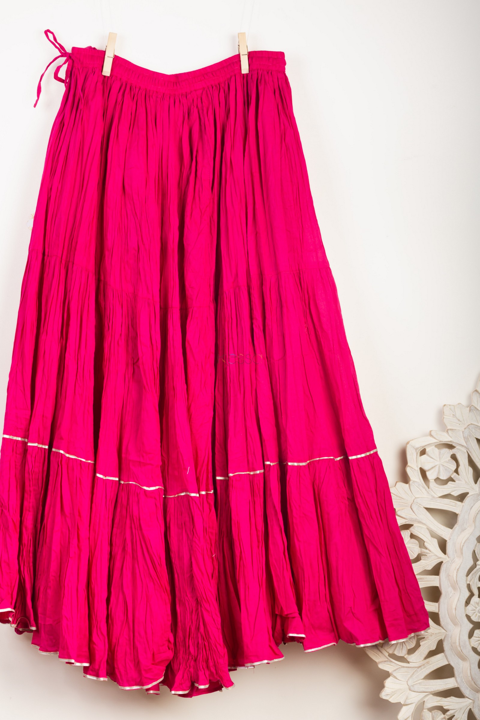 SKU: SAP17 The crushed sharara with full ghera is based on pure mulmul cotton, which comes with elastic waist and drawstring to adjust to the size. The sharara is highlighted with gotta.
