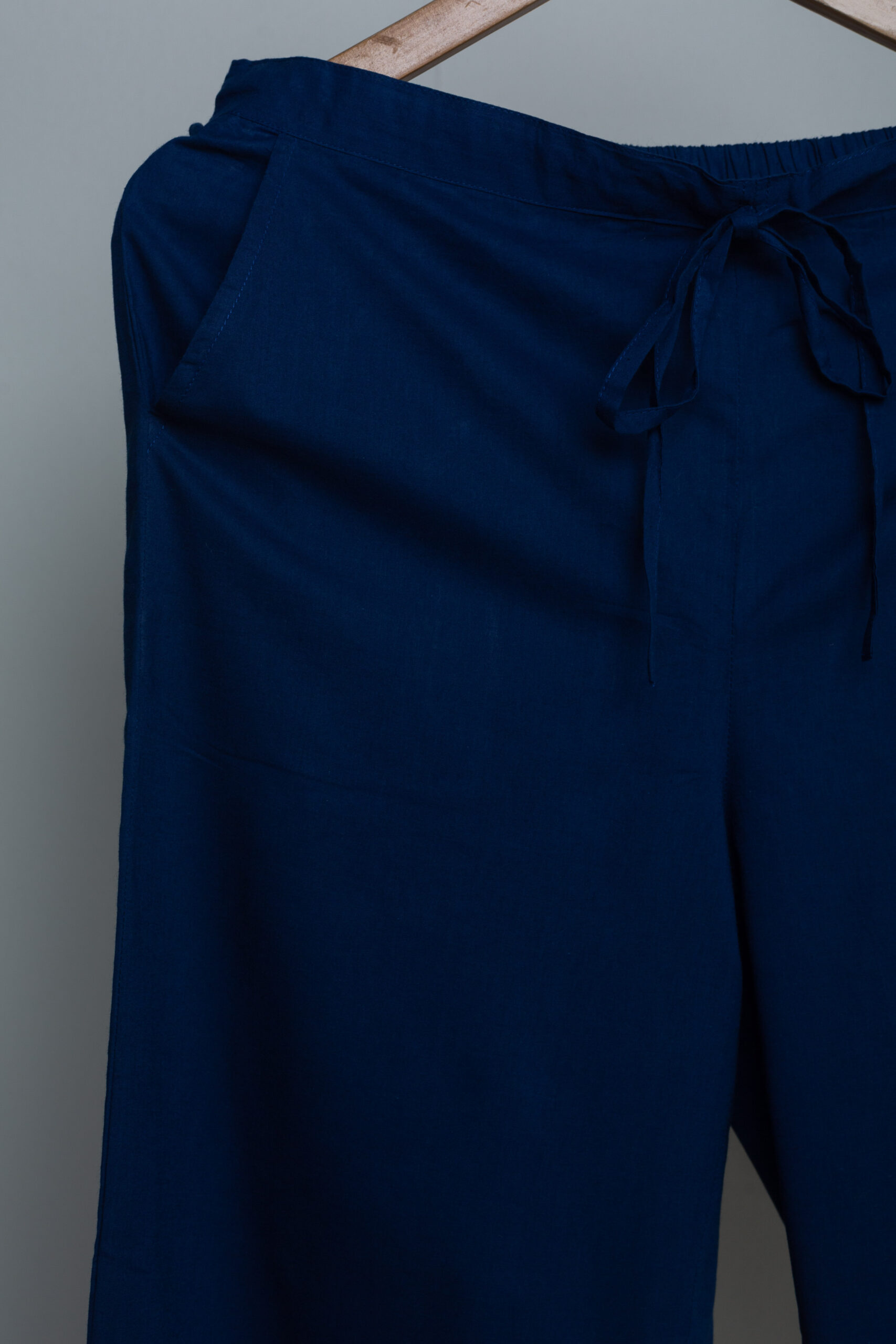SKU: SAP19-indigo A 100% cotton salwar is comfortable wear with one side pocket. Adjustment in waist fitting is not a problem with this salwar as waist is half elastic and front tie thread.