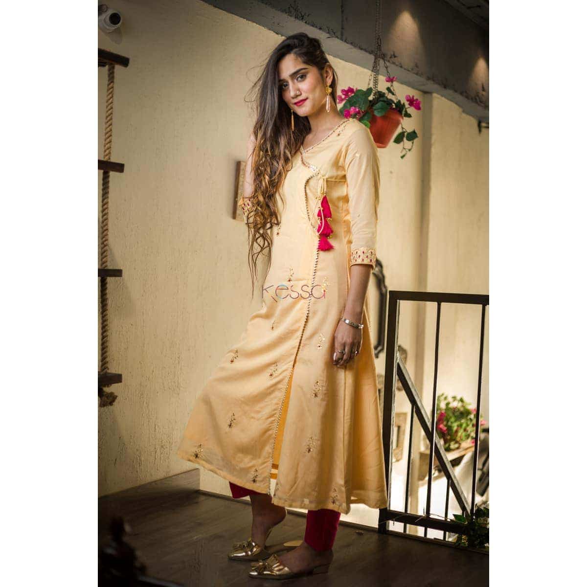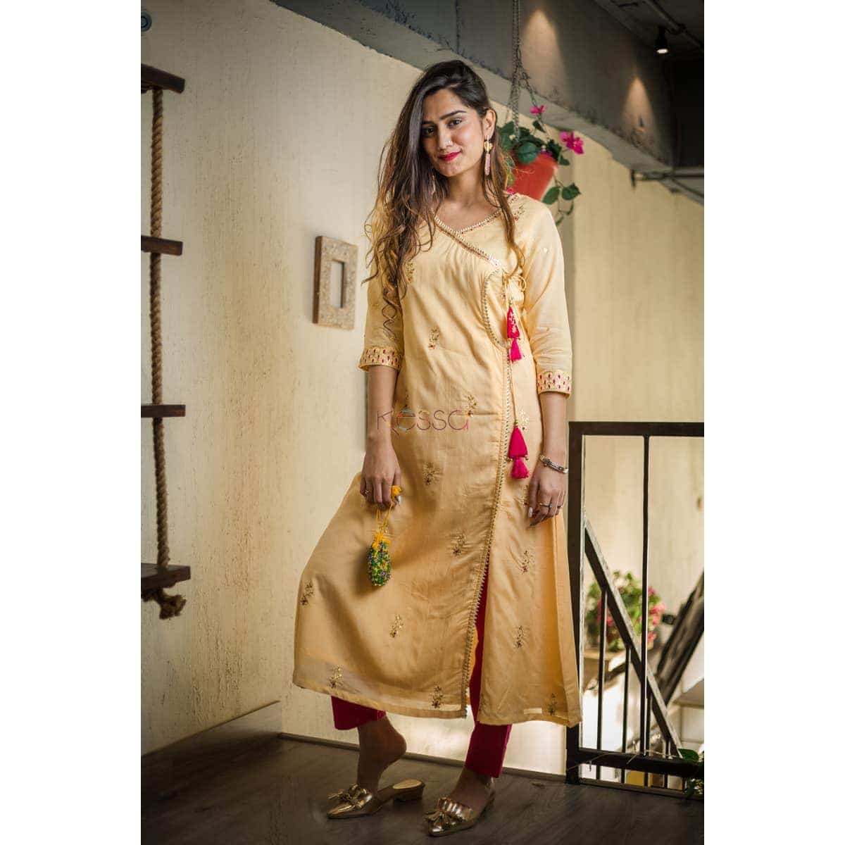 | Tags | A-line, Beige, Cotton-Silk, Kurta, Pink |