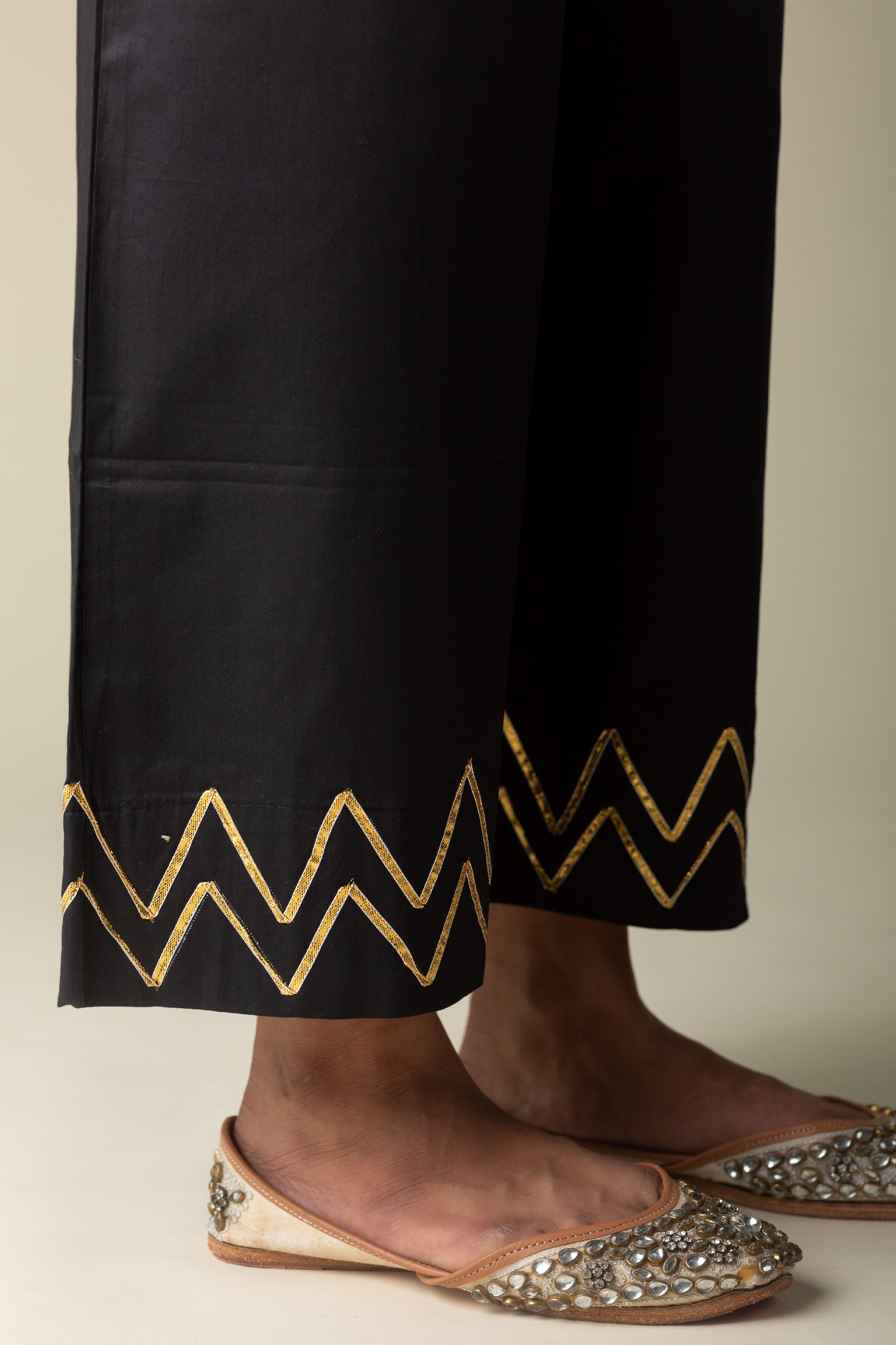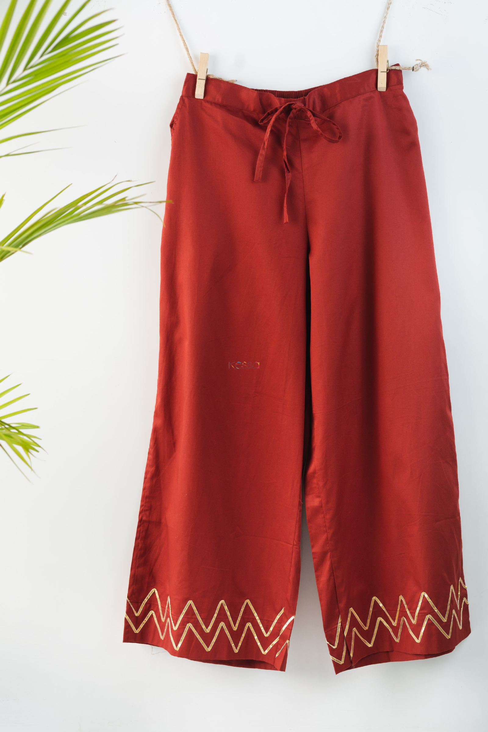 SKU: WSP05 These pure cotton satin based palazzo with waves gota work at the bottom are perfect to slip into with your various kurta collection. All-time classic straight style gives comfortable fit.