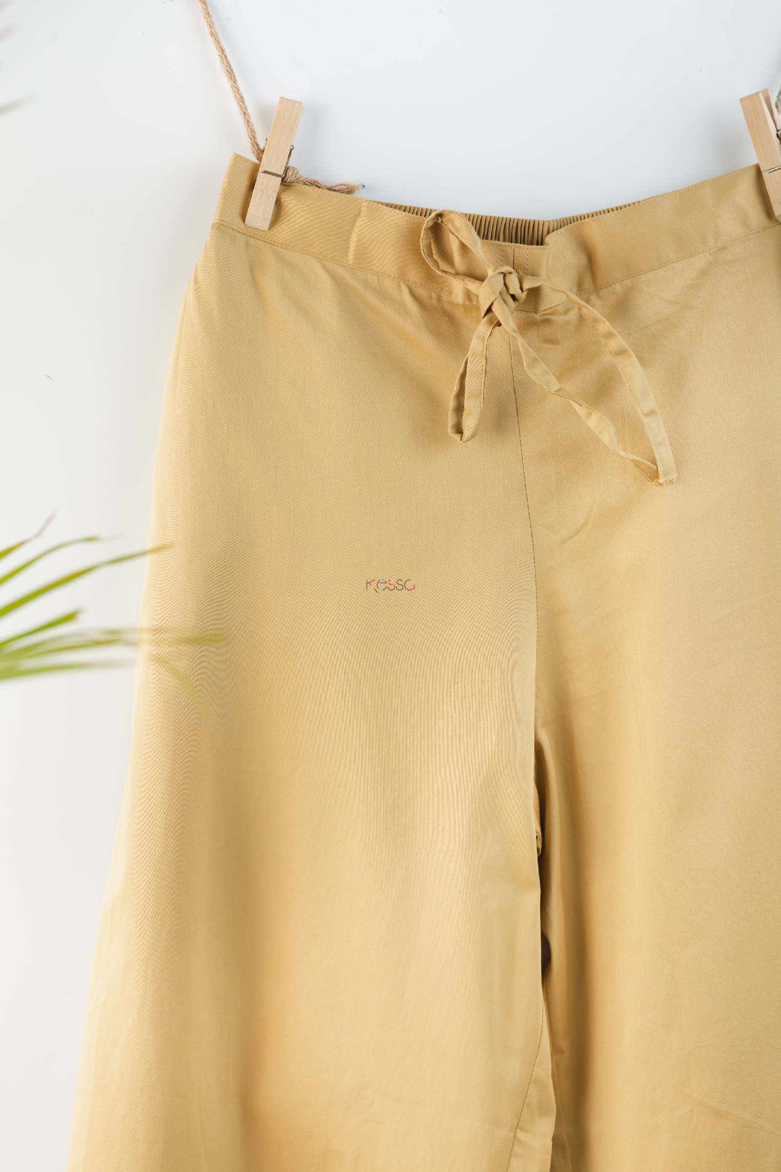 Palazzo’s waist has front thread tie and elastic back waistband for easy waist adjustment.