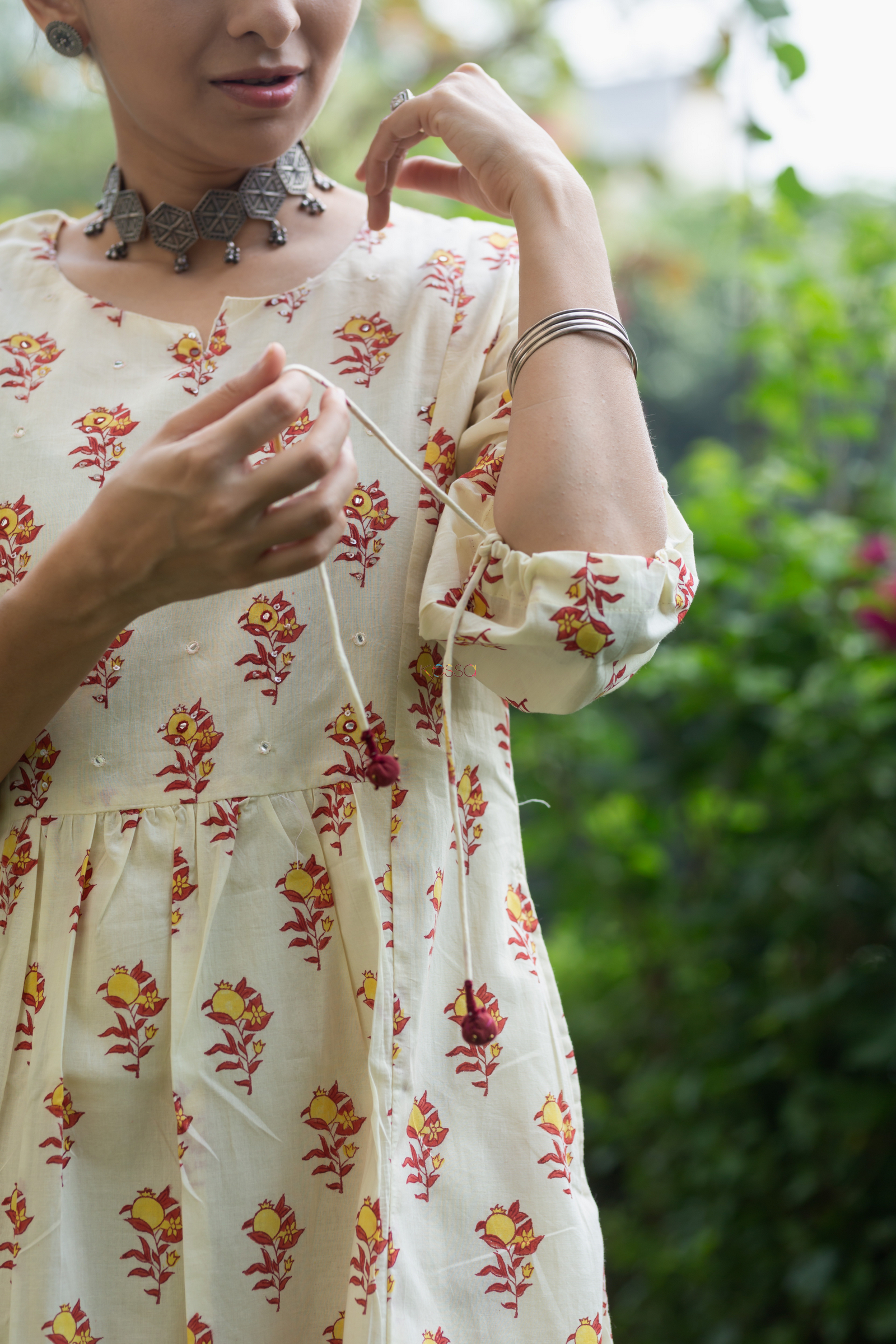 | Tags | A-line, Cotton, Cream, Kurta, Nutmeg Red |