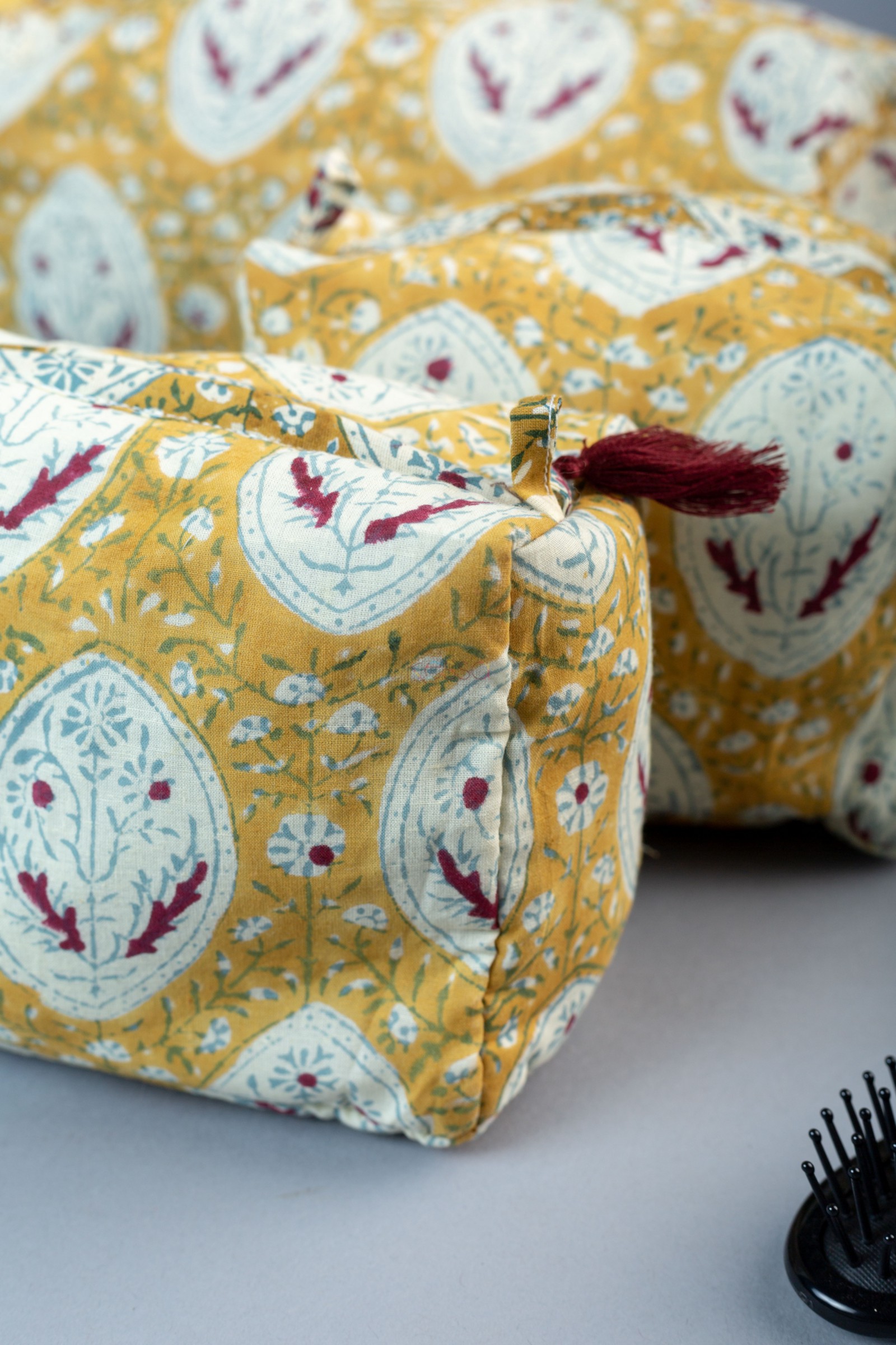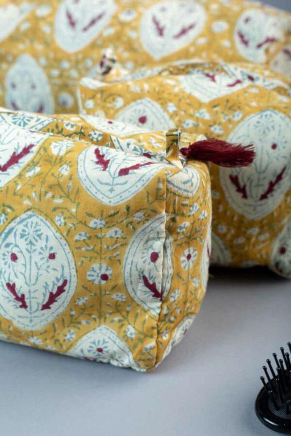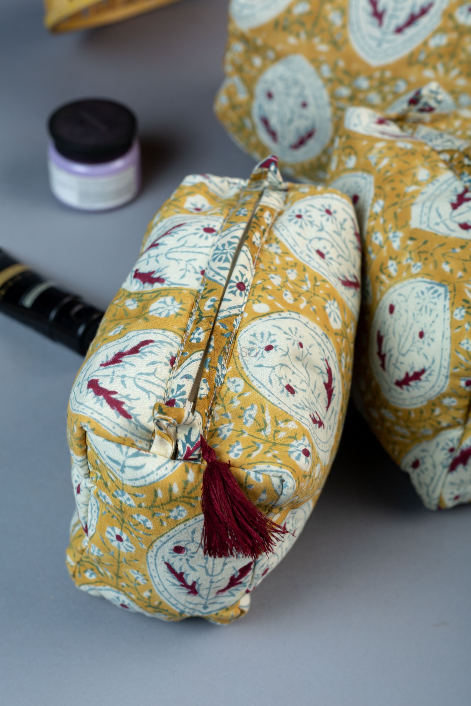 SKU: WSRA124 Designed smartly out of sturdy, eco-friendly cotton, our toiletries bags are meant to hold everything from your makeup essentials to bathing products safely. Each of the 3 bags is lined with a waterproof lining to safeguard your luggage from accidental product spillage. Sizes are-